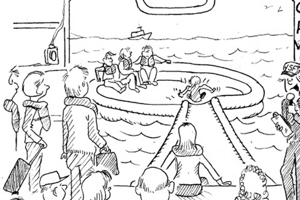 Ah, perhaps you were unaware of this worriment. For decades, our ferries had life raft space for only about 8 thousand of the system’s 37 thousand passengers. Here our Mk. I and II Jumbos with rated capacities of 2,000 and 2,500 respectively had a life raft space for 600 and 1200 riders respectively. As more life rafts meant more crew, this strategy saved money. Yikes! The fuzzy thinking, obviously by someone in an office who never considered personally bobbing around in Puget Sound, was that the second boat on the route would evacuate passengers from the stricken ferry. The ferry’s rescue boats would haul rafts of people back and forth. This approach was practiced, even using actors to play “difficult” passengers. If there wasn’t a second boat available passengers were limited. Fortunately on the Kingston/Edmonds route, even in the summer, we don’t approach our boat’s rated passenger loading. You may recall that a Bremerton boat going to a Seahawks game in 2015 reversed course to off load 484 crabby fans after a passenger miscount.