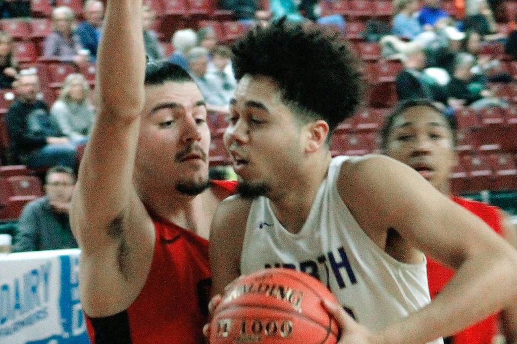 The offense woke up a bit in the fourth quarter. Jonas La Tour hit a pair of 3-pointers in the fourth quarter and led North Kitsap with eight points. Shaa Humphrey added a pair of buckets as well and senior guard Roman Caizza, who rarely sees time on the floor, got into the game late and knocked down a 3-pointer to the delight of the North Kitsap crowd.
