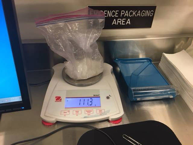 A search around 7:55 p.m., police said, turned up heroin in amounts weighing approximately 108 grams in its container. About 95 grams of meth, cocaine and pills were found elsewhere in the house, according to police.
