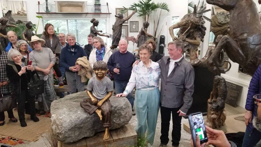 The Friedman Oens Gallery on Bainbridge Island recently hosted the unveiling of a bronze statue of Creekmore, to be located at the nearby Morrow Manor Neighborhood Park. On Feb. 24, the bronze statues within the Friedman Oens Gallery were joined by a crowd of people who had all come to see the unveiling of the statue of Creekmore.