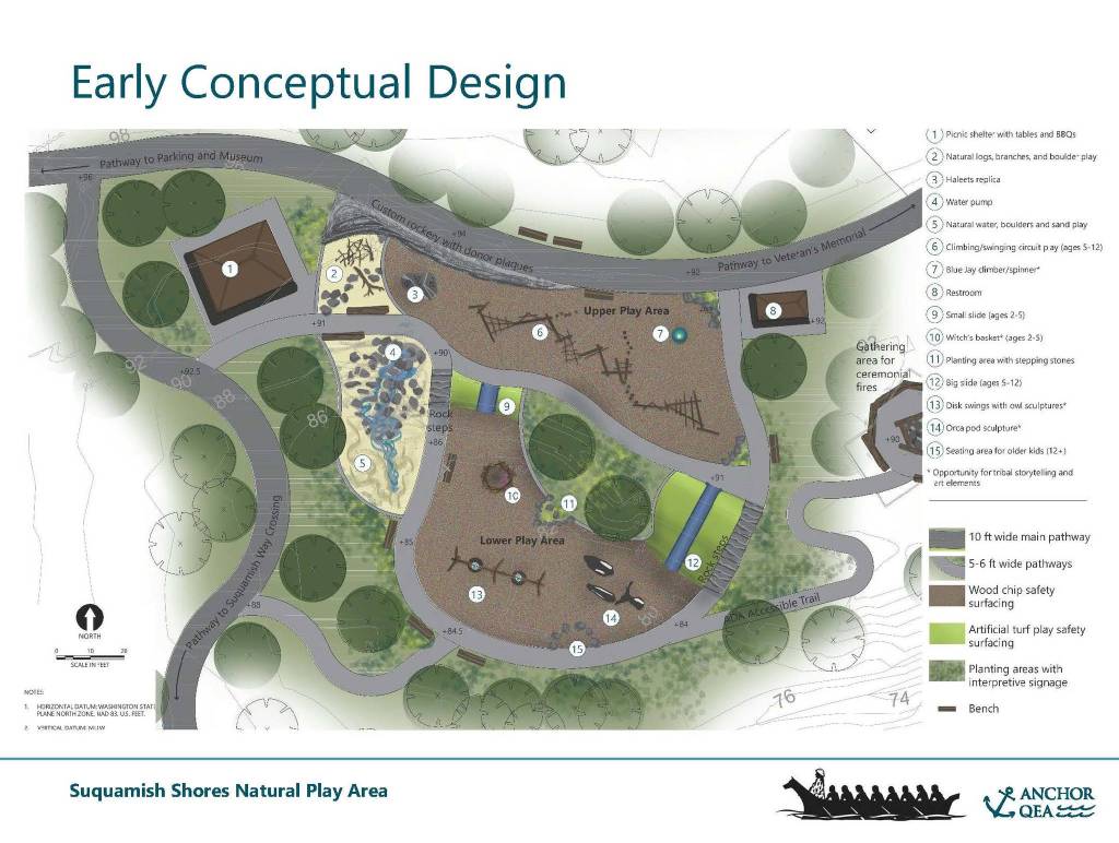 The park will span from the Suquamish Museum to the downtown Veteran’s Memorial with trails, gathering places, and a culturally themed playground featuring traditional stories, the Tribe says. The park will be free and open to the public. The Suquamish Tribe will soon break ground on the park, which is designed to better connect the community both physically and culturally.