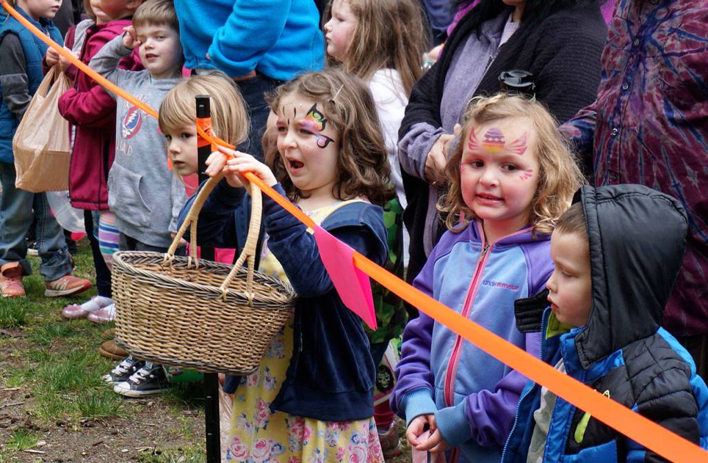 With the seconds slowly ticking by until noon when the red crossing tape would drop, these egg hunters — with ages in the single digits — had their empty baskets at the ready to collect those coveted brightly colored plastic orbs filled with chocolate treats.