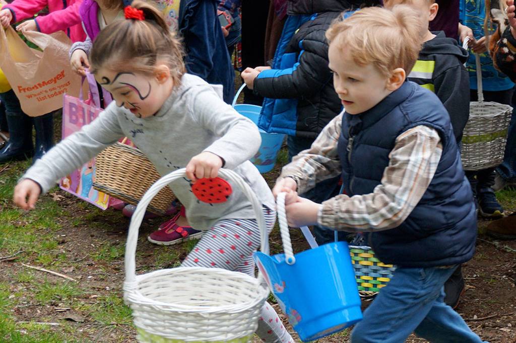 The tape dropped and off went the inveterate hunters to collect the bounty that the generous Easter Bunny and his helpers had left behind by the thousands on the open spaces at South Kitsap Regional Park — as he has done for years around this time of year.