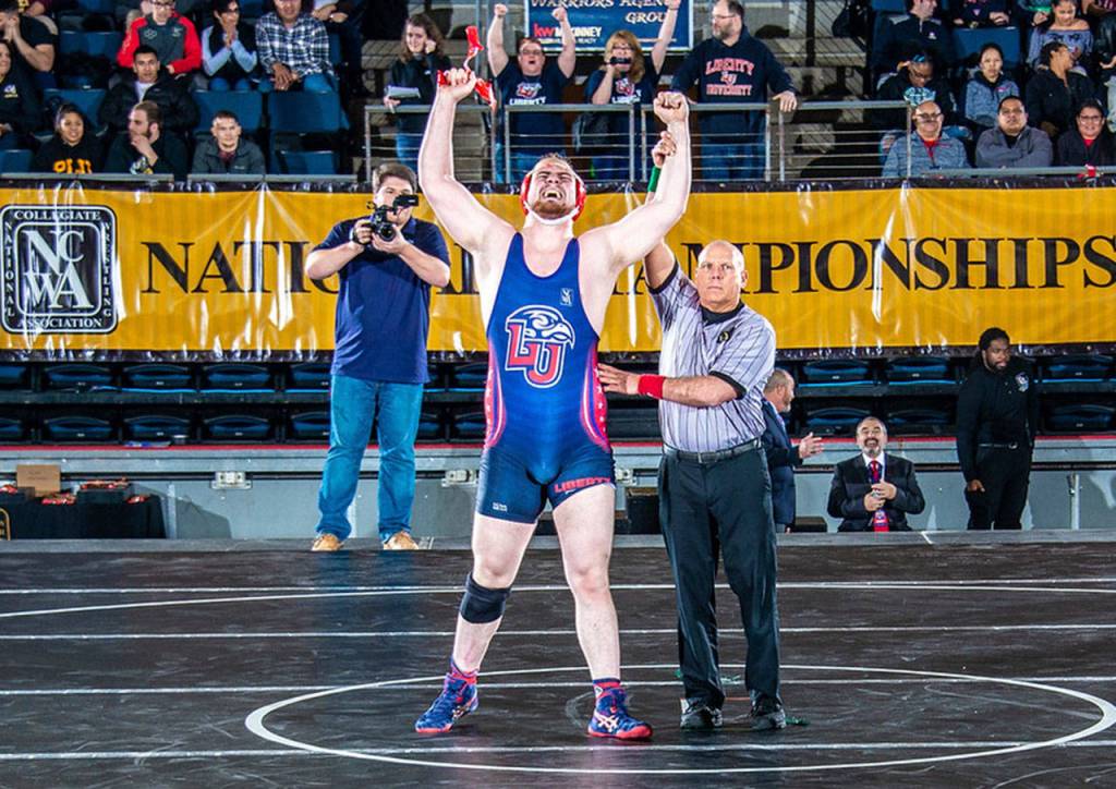 But this past spring, he etched his name into National Collegiate Wrestling Association history, winning a national championship in the 285-pound weight class as a senior at Liberty University in Virginia.