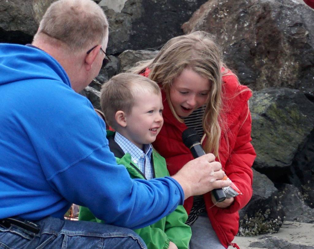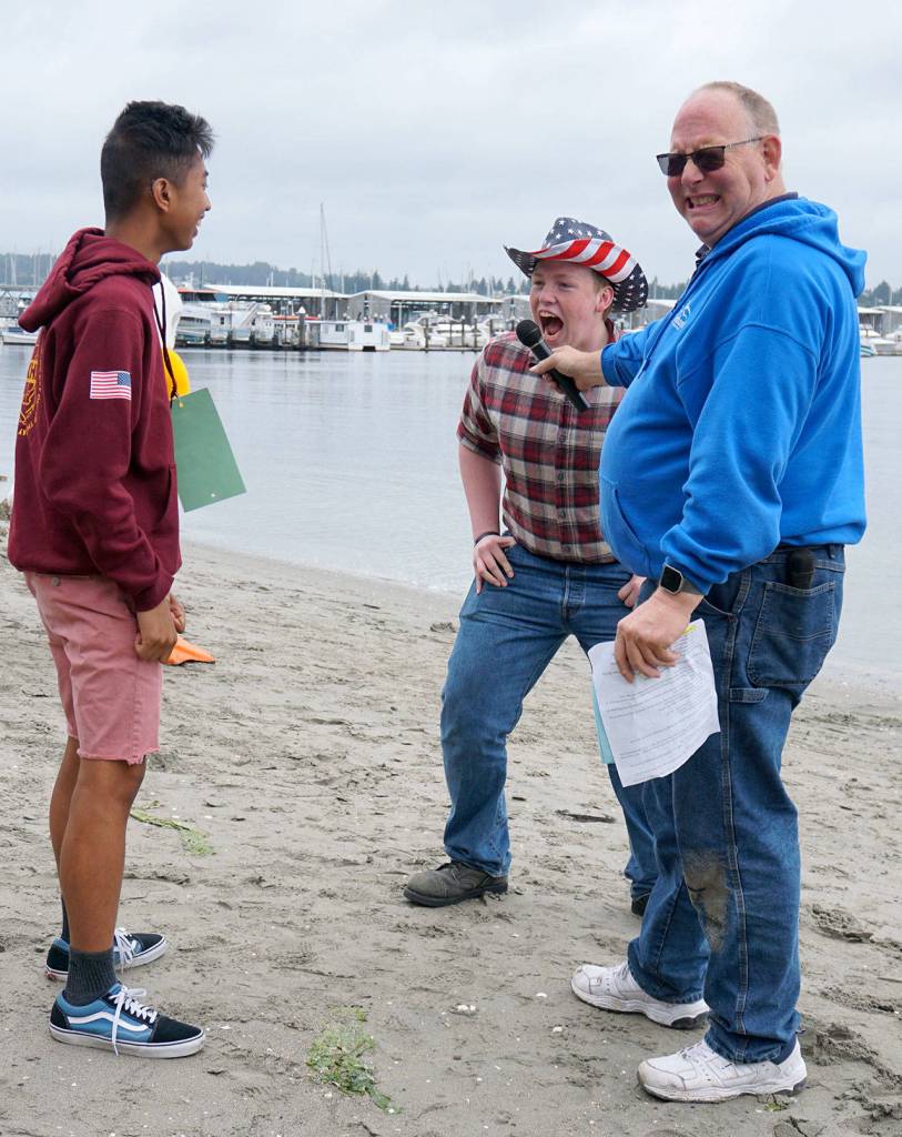 The chamber-sponsored event — the 31st annual seagull calling contest — also featured plenty of food for the humans who ventured out to the Port Orchard waterfront despite the wet weather threat. The “wings cook-off” was advertised to onlookers by a waft of savory scents emanating from the variety of wings being prepared several yards behind the sandy beach for taste tests after the seagulls were sent on their way.