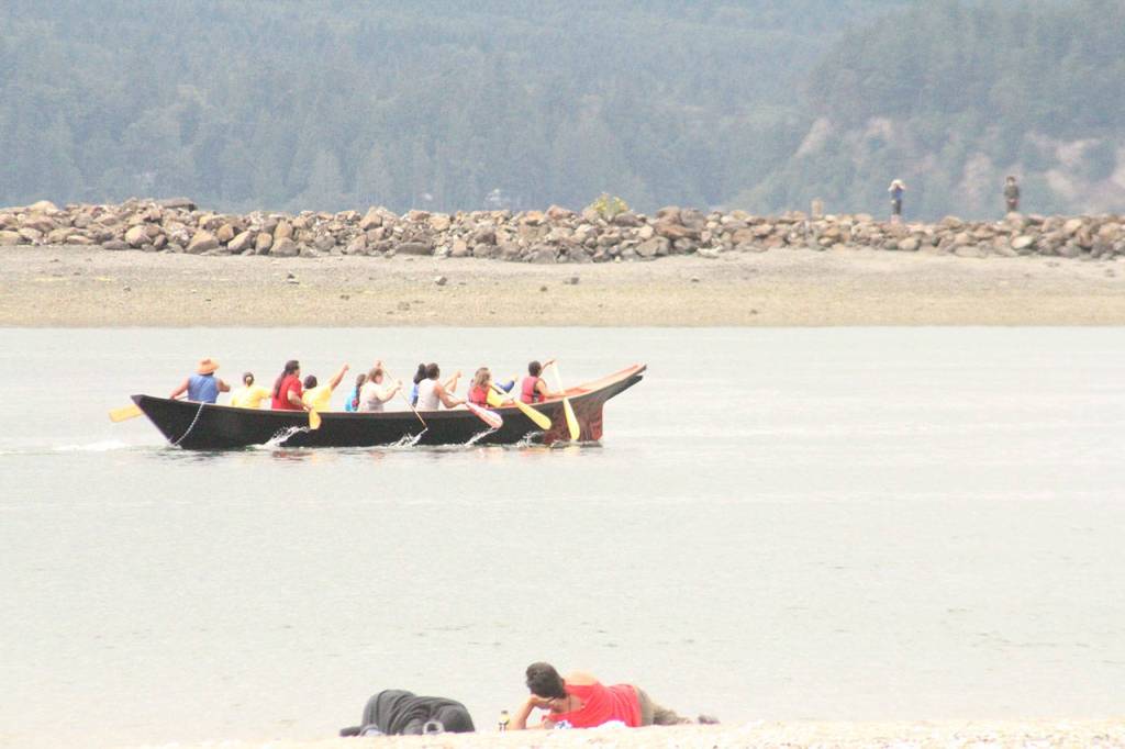 Dark clouds made good on their promise of rain when the first few canoes began to approach Point Julia as the Port Gamble S’Klallam Tribe hosted the annual Canoe Journey Thursday.