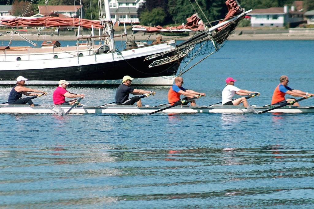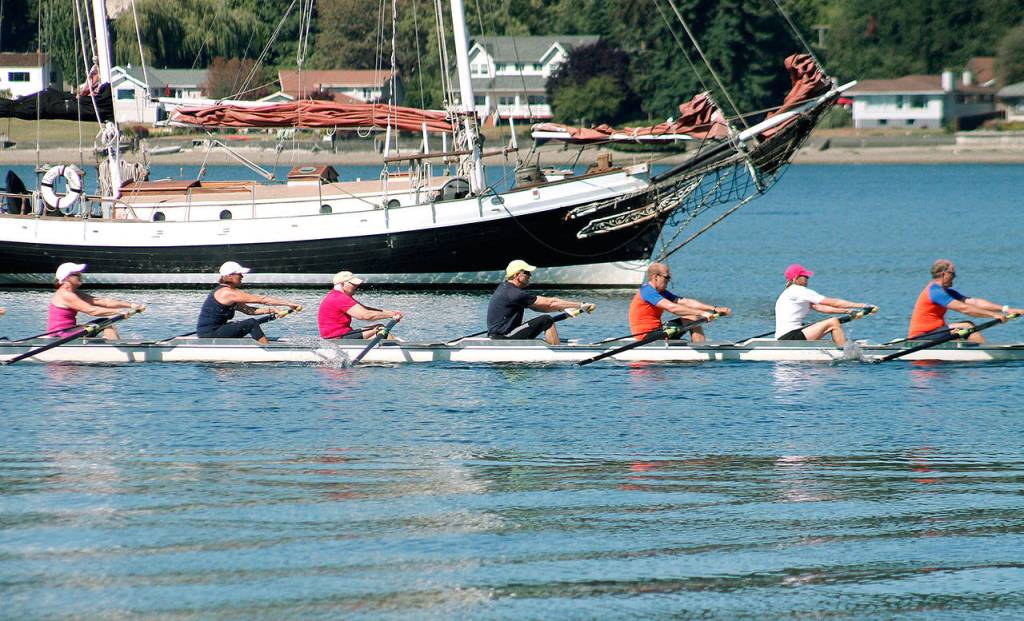 Rowers from organizations on both the Kitsap and Olympic Peninsulas descended upon Liberty Bay to get a chance to form crews with unfamiliar faces and race from Pearson Dock along the western end of the bay, turning around just north of Waterfront Park in Poulsbo before returning to Pearson.