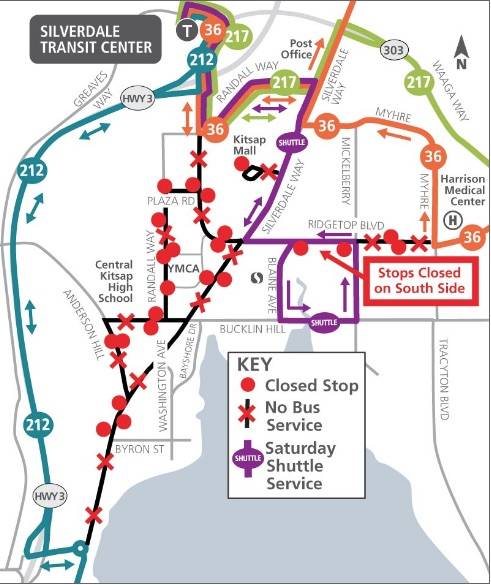 Street closures will impact Kitsap Transit bus routes starting Friday at 3 p.m. Areas of Old Town Silverdale will close Friday afternoon, affecting Route 35 service.