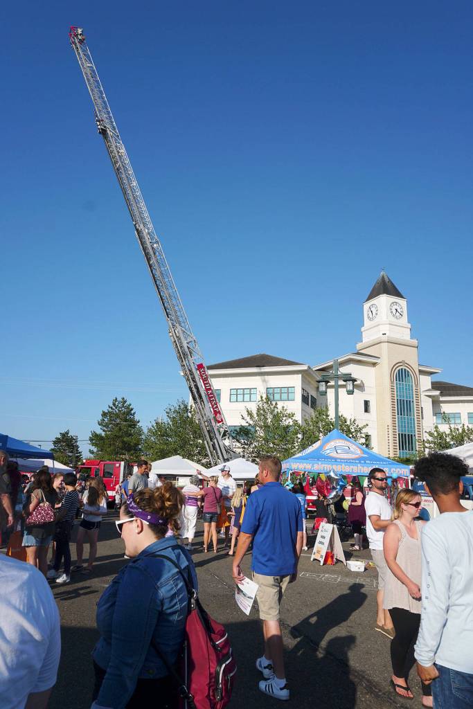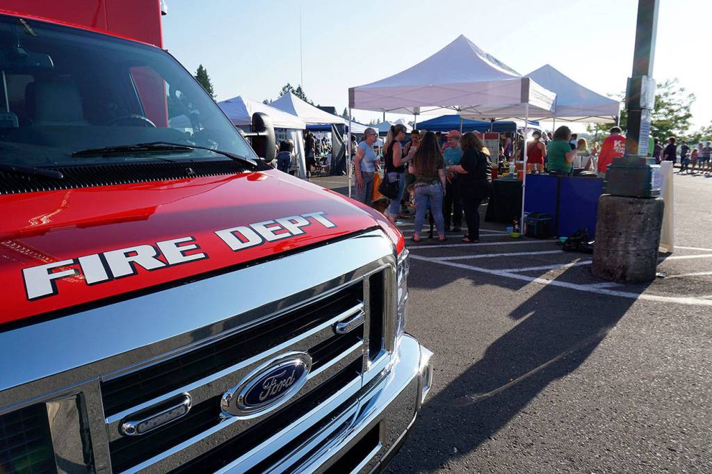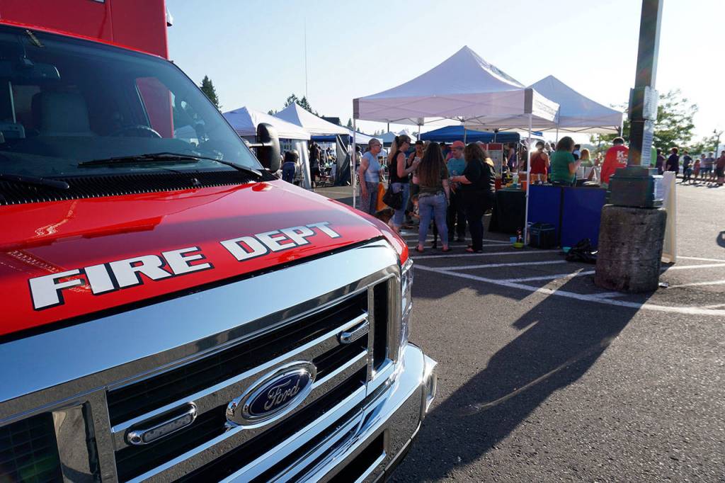 With the band Ignite playing rock in the background, the family-oriented crowd — heavy on the youngster ratio — was able to chat with members from the Kitsap County Department of Emergency Management’s Search and Rescue team, plus meet and pet a couple of the amiable search-and-sniff canines stretched out in front of their booth at the event.
