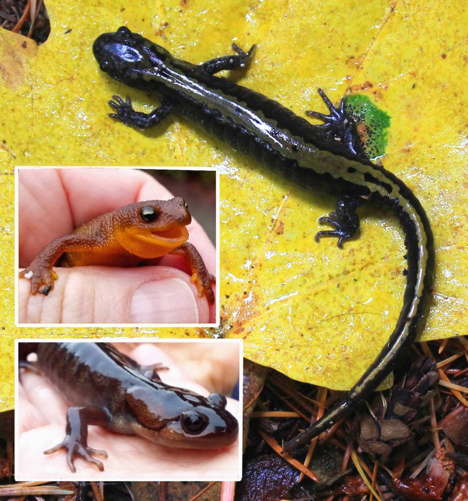 Salamanders breed in ponds and streams, dining on aquatic bugs, until they develop lungs that replace the external gills. Then, taking up life on land, they wander widely until they return to the same breeding pond (some species guided by earth’s magnetic field).