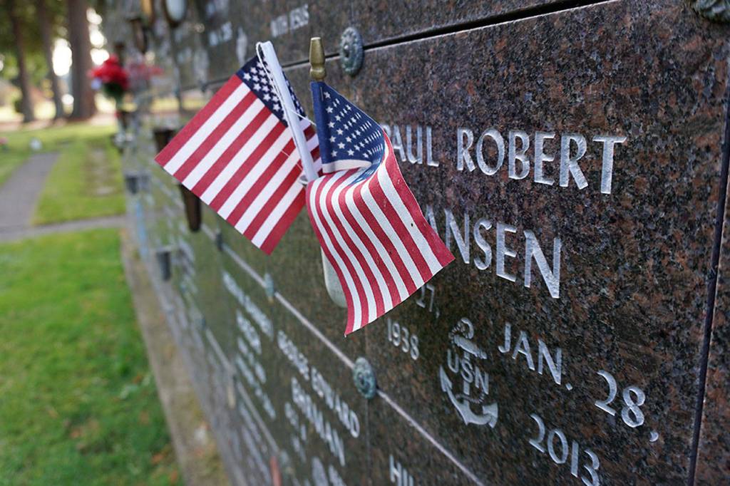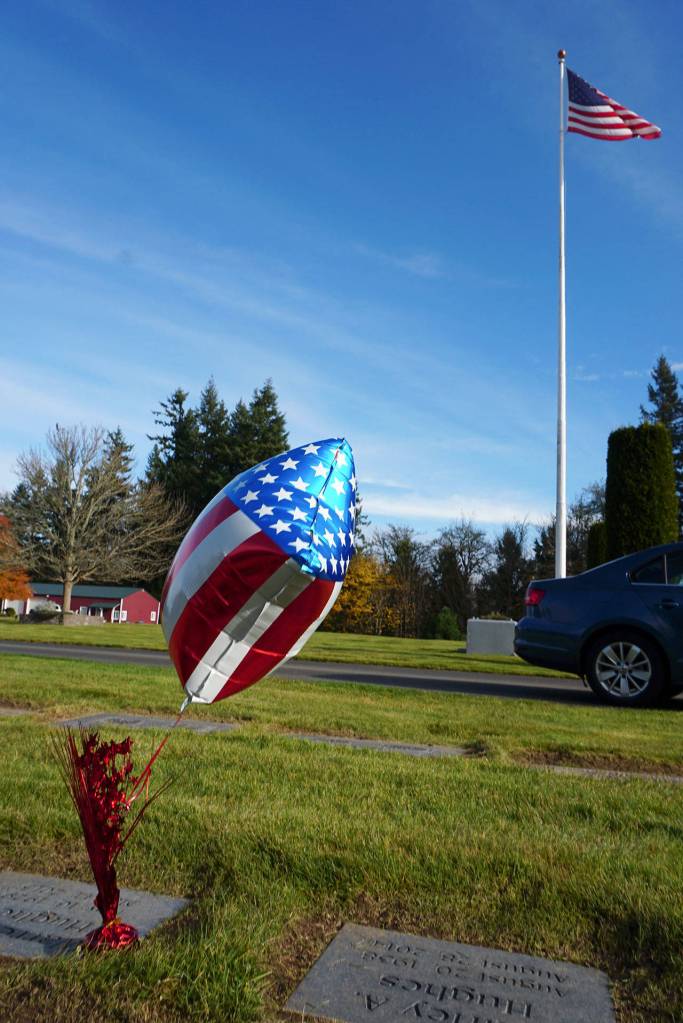 PORT ORCHARD — Cemeteries containing the remains of honored veterans — including Sunset Lane Memorial Park in Port Orchard — were visited by somber family members on this quiet Monday afternoon who left miniature flags and small stars-and-stripes-adorned balloons next to the plaques and monuments of their loved ones who served the nation at some point of their lives.