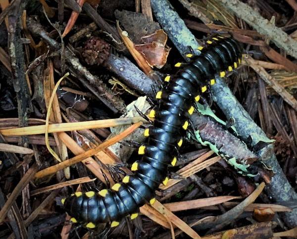 The forest floor is home to some wondrous animals, such as the tiny but potentially toxic yellow-spotted millipede, so keep your distance. This abundant critter eats up to fifty percent of the dead leaves and conifer needles littering the ground, making it vitally important to the forest ecosystem.