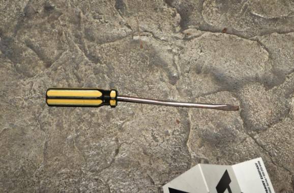 “Did he have something in his hand, like a weapon like that I don’t know, I did see something go flying when he hit the people — and I assume it was a screwdriver — hit the cart path and roll around. I don’t know if he meant to go and look for it or was trying to find it, but a screwdriver of some sort went flying through the air when he tripped over the kids and landed on them,” the witness said.