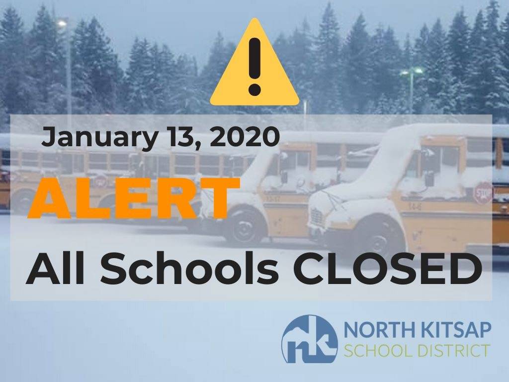A blast of winter weather prompted the North Kitsap School District to close all schools on Monday, citing unsafe driving conditions in areas south of SR 104. All afternoon and evening events within the district were cancelled as well.