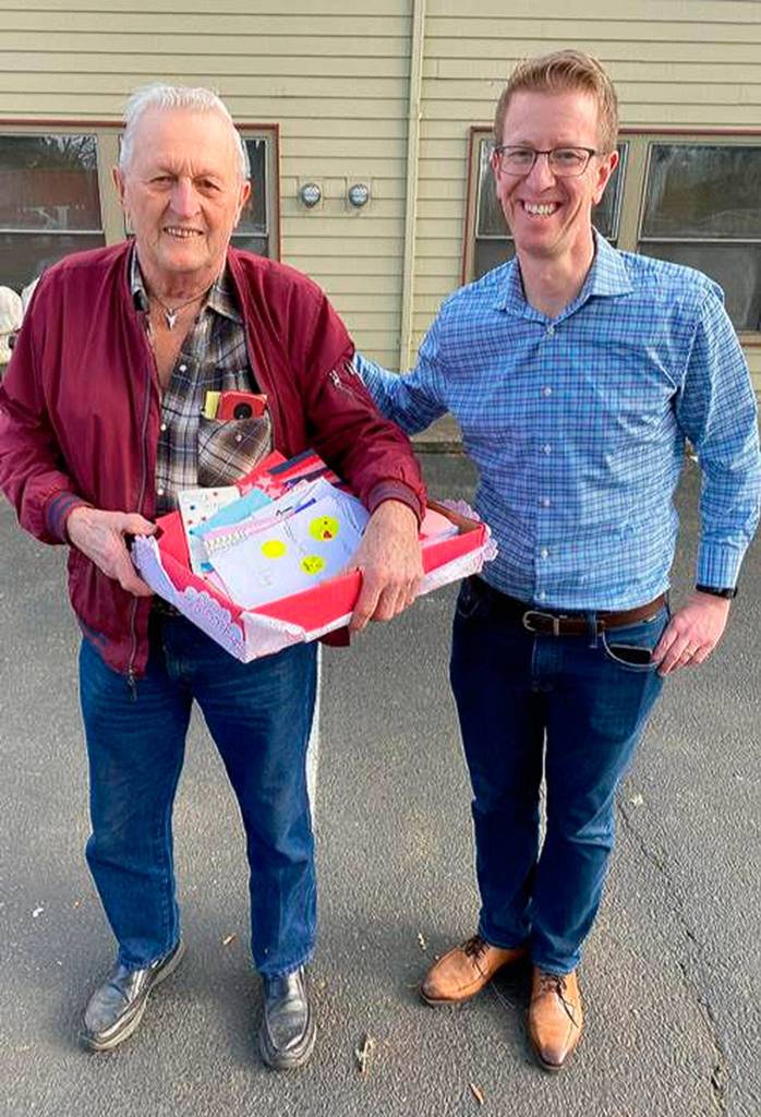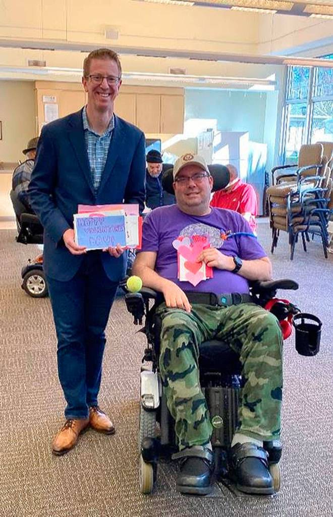 PORT ORCHARD — U.S. Rep. Derek Kilmer hand-delivered a passel of Valentine’s Day cards to residents at the Washington Home for Veterans and the VFW Post 2669 in Port Orchard Friday as a gift from area students in the Sixth Congressional District.