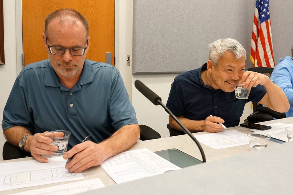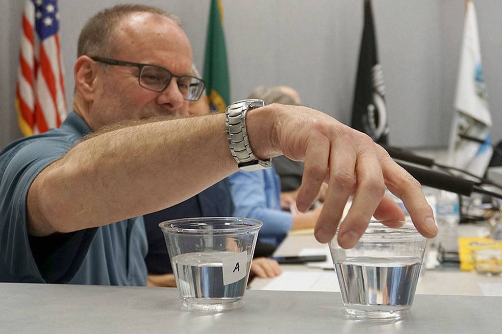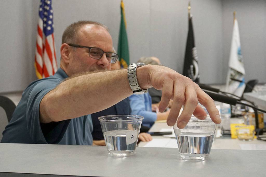That’s not to take away from other city water sources council members sampled, including those from wells sprinkled around Port Orchard. Jacki Brown, utility manager for the city’s public works department, said she also tapped into supplies from Port Orchard’s new treatment system for iron manganese at Well 9 at the corner of Tremont and Sidney, and water from Well 8 at the dead-end side of Sidney. She also took a sample of H2O from City Hall — right out of the tap.