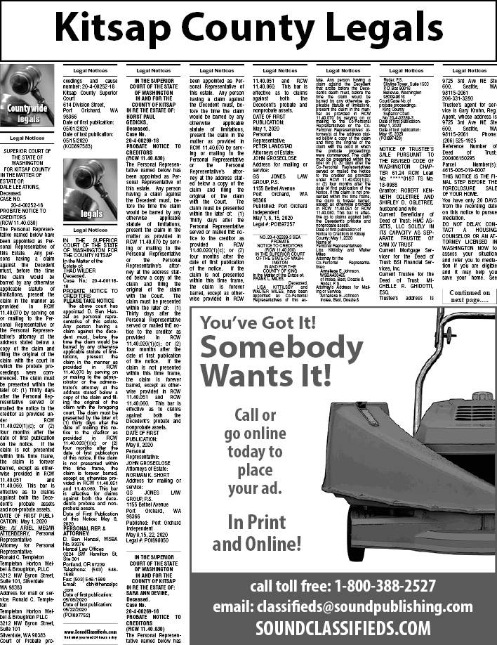 Kitsap County Legal notices May 8, 2020