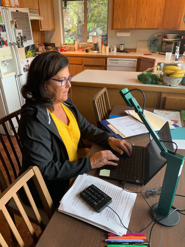 “It’s kind of been three different scenarios. I have been in my classroom a few times. Our Internet connection in Poulsbo is not very good, so we are fortunate that we have a cabin out in Shelton, and we have a great internet connection out there. So we have been there primarily just because we can all be online at the same time,” French said.