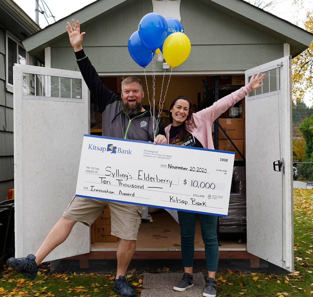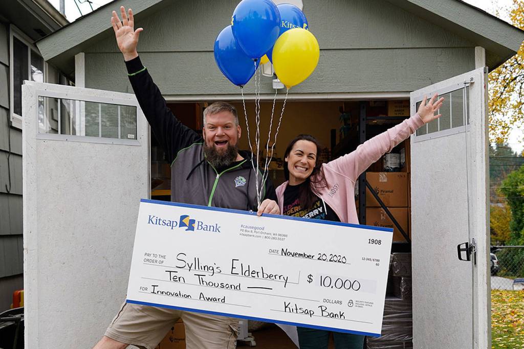 PORT ORCHARD — Sylling’s Elderberry, a small business in Port Orchard and Poulsbo, won the edg3 FUND small-business competition’s Innovation Award and $10,000 in cash Nov. 20 from sponsoring company Kitsap Bank.