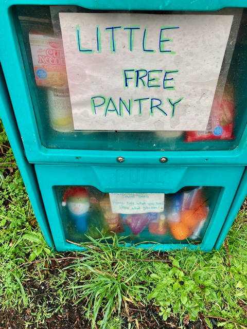 Poulsbo’s free food pantries are located at the entrance to Fishlines Marketplace on Viking Avenue and in the Whitney Glenn neighborhood at Megger Circle.