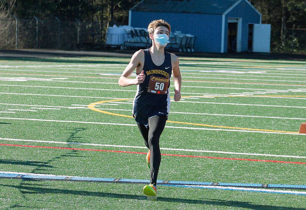 The Bainbridge girls defeated South Kitsap 23-34 as Spartans runners finished second, third, fourth, sixth and eighth. Lucy King came in third after Michael with a time of 13:44.09, followed by Lily Curtis (13:54.26), Zoe Lim (14:26.08) and Liliana Pohl (15:36.84).