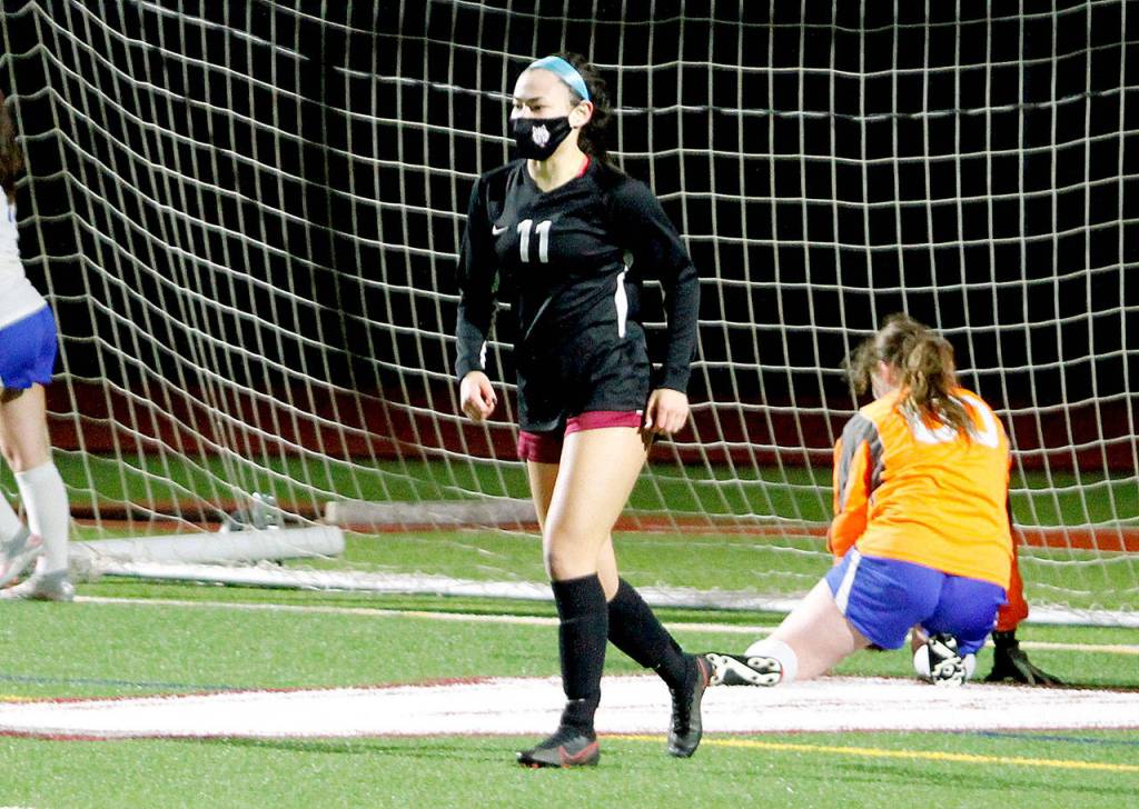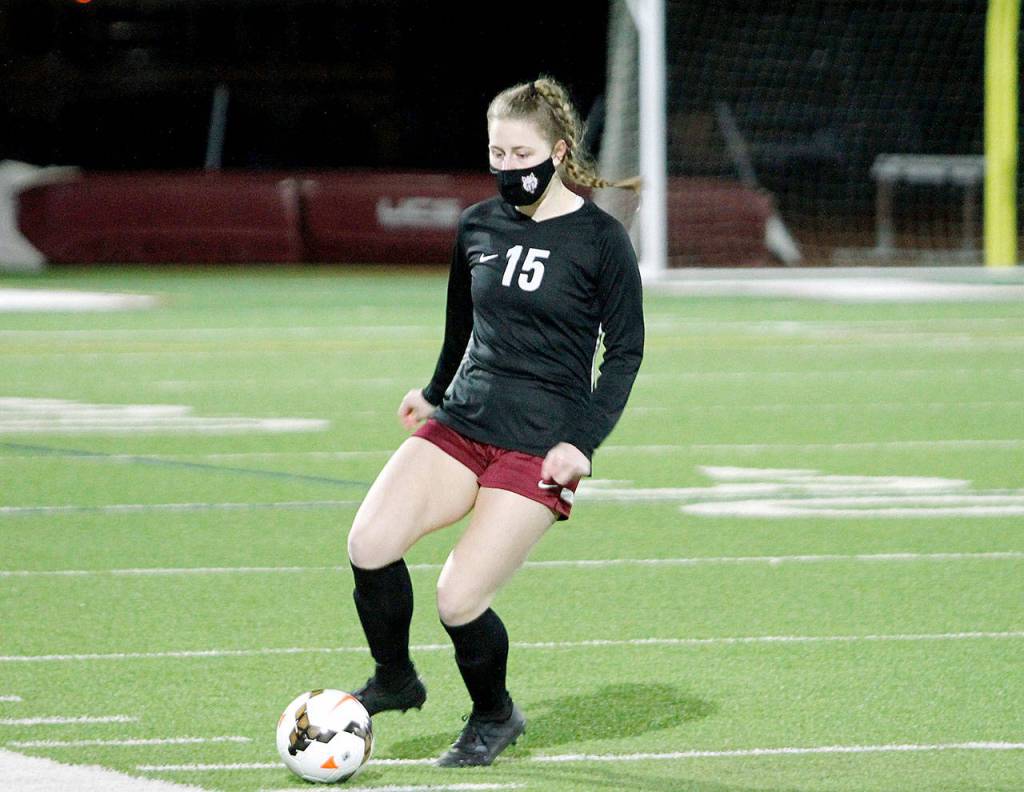 It took just four minutes for South Kitsap to get on the board. A pass from Hailey Deese found Moppins on the run with a clean look at the net and the senior buried it for a 1-0 lead.