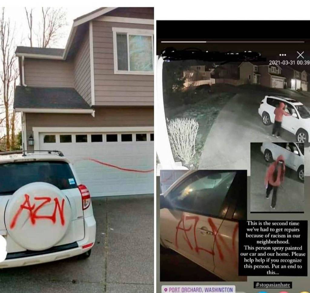 A property destruction incident described as “allegedly racially-biased” took place yesterday in the city in the early morning hours, according to the Port Orchard Police Department. The incident involved the spray painting of “AZN,” which possibly might be an abbreviation for Asian, on the victim’s vehicle. The victim’s garage door was also marked up with graffiti.