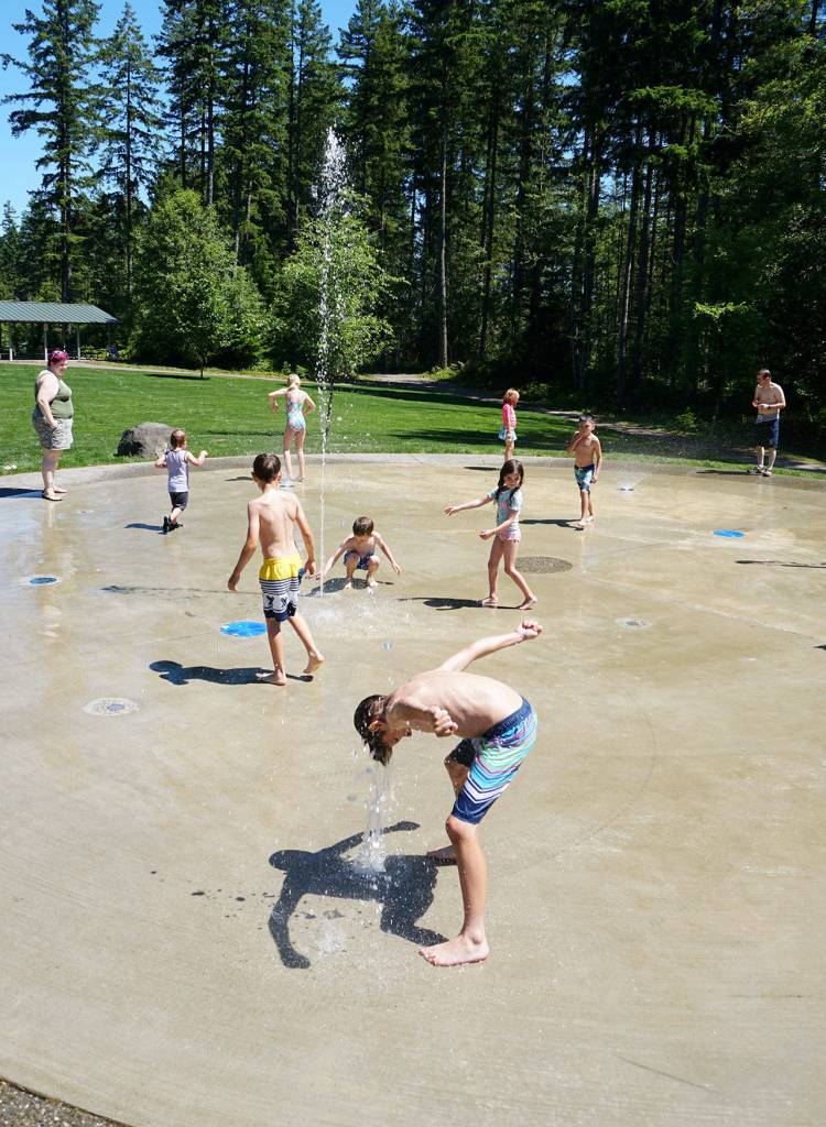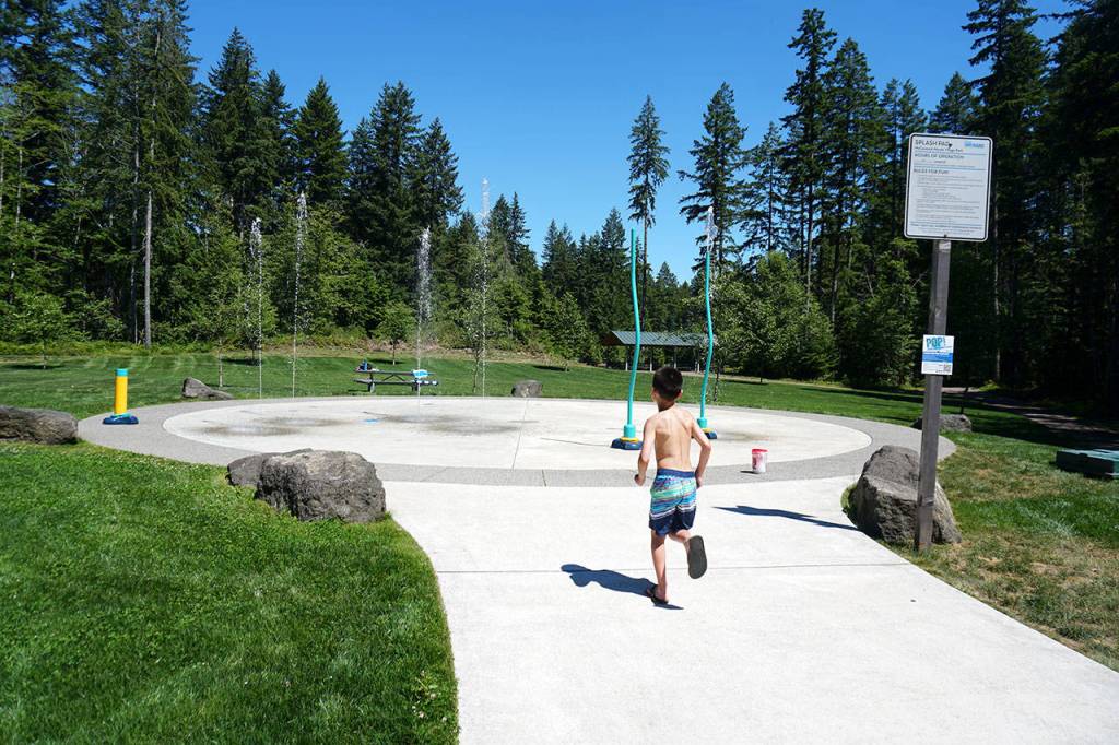 Kids and their parents began arriving at McCormick Village Park about 15 minutes before noon on Saturday, well ahead of the time when a Port Orchard Public Works employee was to activate the park’s water splash area to kick off the start of a spell of hot weather in the Puget Sound region.