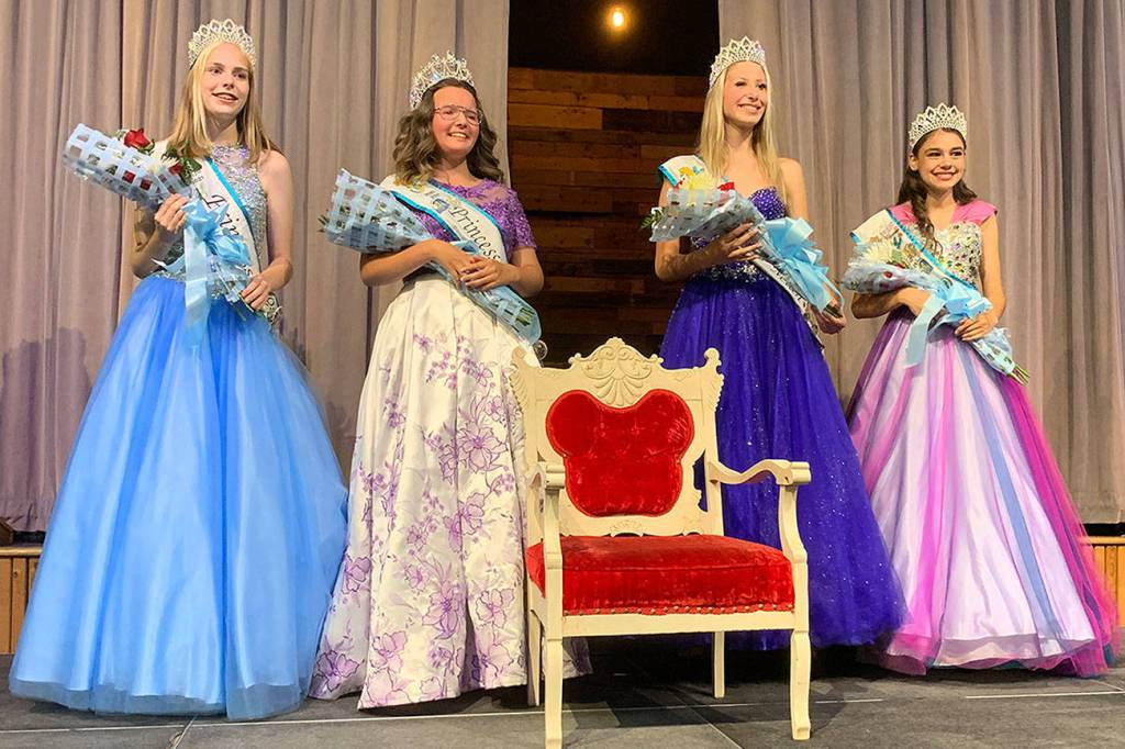 Here are the Fathoms O’ Fun Festival’s junior and senior princesses at the 2021 crowning ceremony July 24 at Harper Church: (left to right) Princess Rose; Princess Veronica; Princess Miah and Princess Elizabeth. (Bob Smith | Kitsap Daily News)