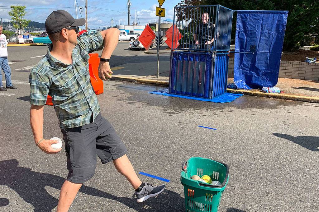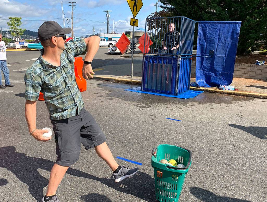 Even Port Orchard and fire district officials got into the act at the dunk tank. Police Chief Matt Brown and South Kitsap Fire and Rescue Chief Jeff Faucett donned their uniforms and gamely sat on the hot seat above the tank awaiting a sharp-eyed pitcher to send said official into the water.