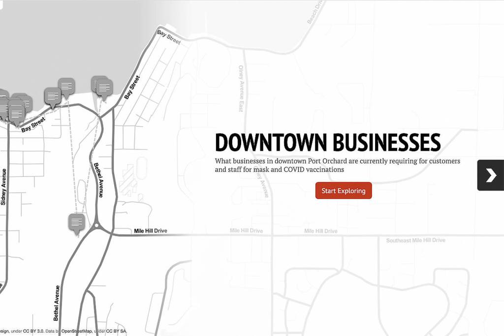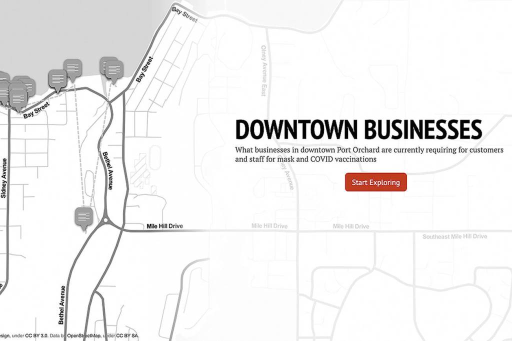 This map shows what some businesses in downtown Port Orchard are requiring — or not requiring — of customers and staff when it comes to masking and vaccinations.