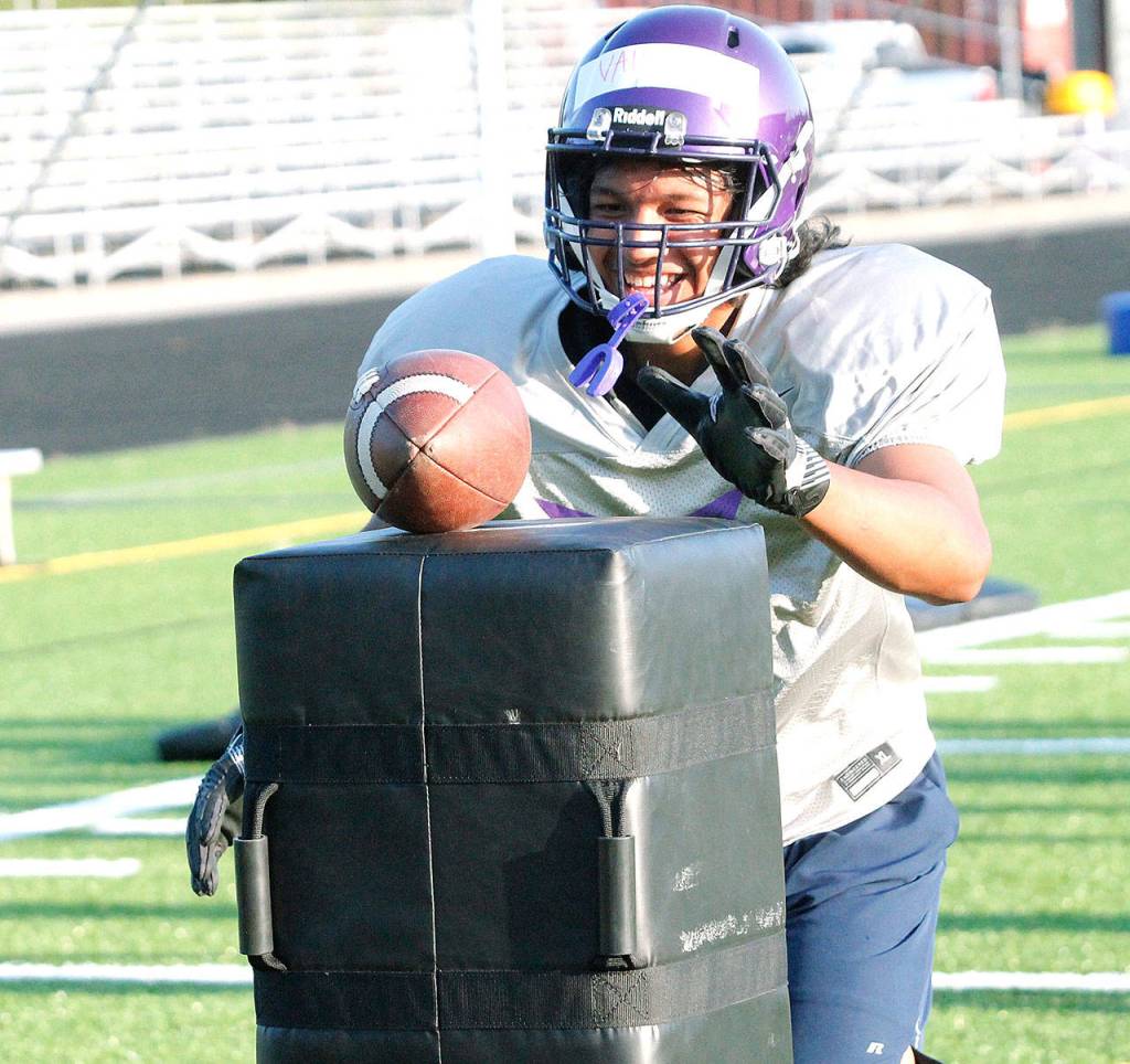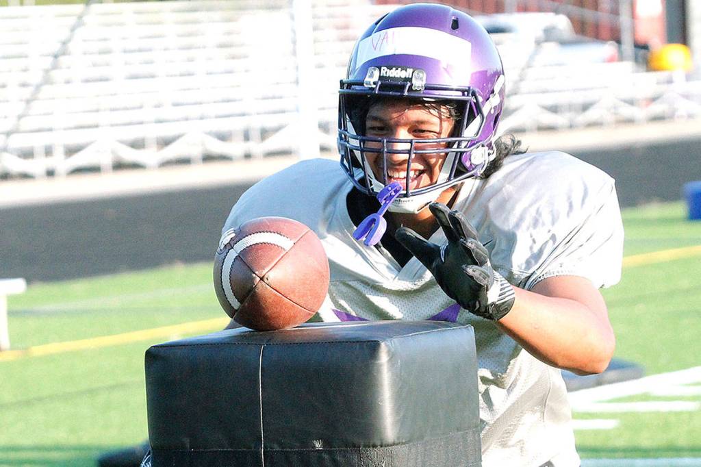 During the shortened spring football season, South Kitsap split its program into two or three teams and often kept them separate, in pods, working in the various corners and ends of the field. It’s a much different feel than a standard fall preseason, in which the varsity, JV and C teams have the chance to be on the same field, work with and interact with one another.