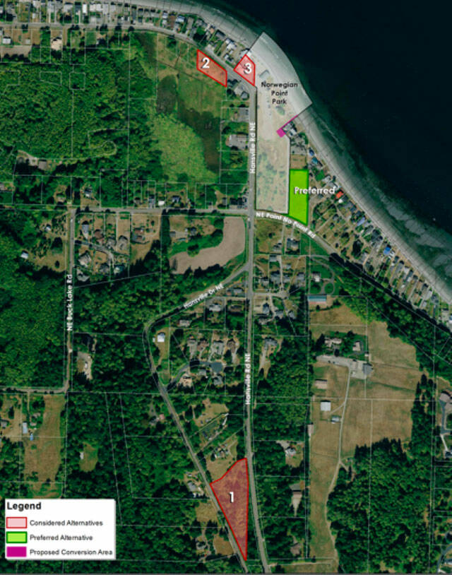 Kitsap County is seeking public comment on three alternatives for a proposed conversion of approximately 6,000 square feet of land at its Norwegian Point Park in Hansville.