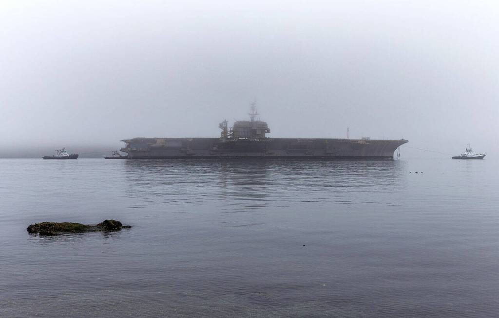 The 1,069-foot decommissioned supercarrier was escorted through the Puget Sound waters by tugs, led by the 157-foot Lindsey Foss. When it arrives in Brownsville, Texas, where it will be dismantled and its scrap metals later sold, the veteran of wars in Afghanistan, Iraq and Vietnam will have taken the long route around the tip of South America to the other side of the North American continent. That’s because the mighty marine war machine is too wide to navigate through the Panama Canal.