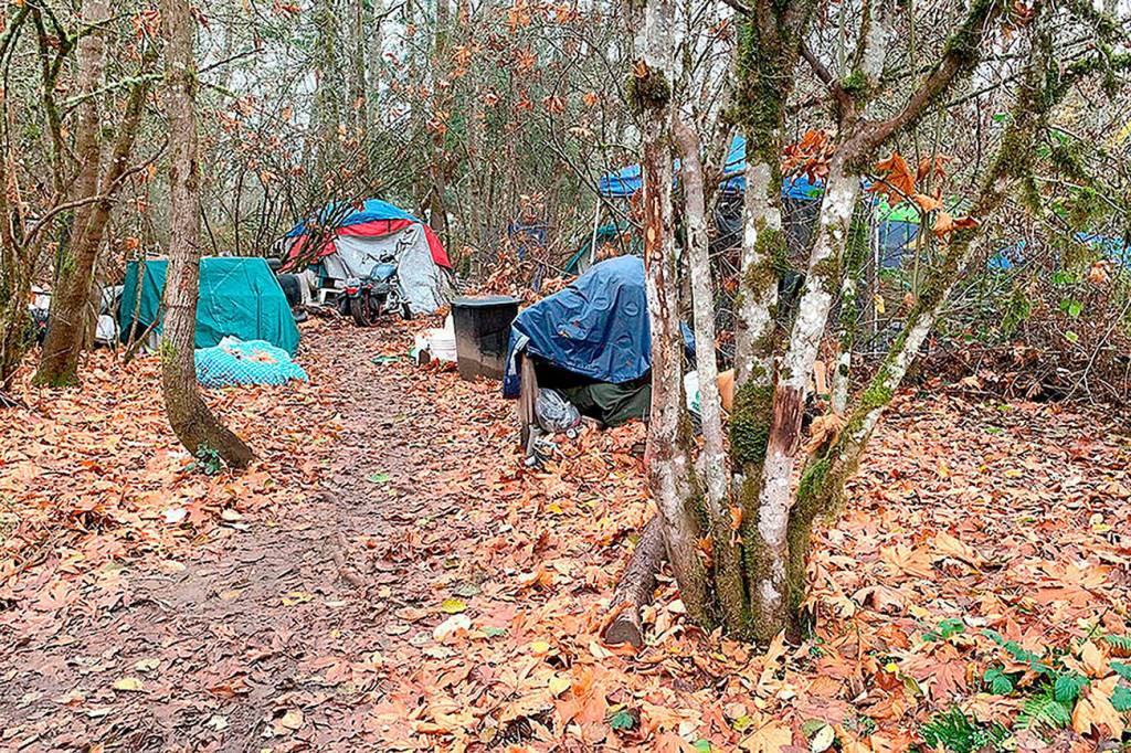 Eviction of the homeless encampment littering the woods around the county-maintained Veterans Memorial Park seems near, Port Orchard Mayor Rob Putaansuu says.