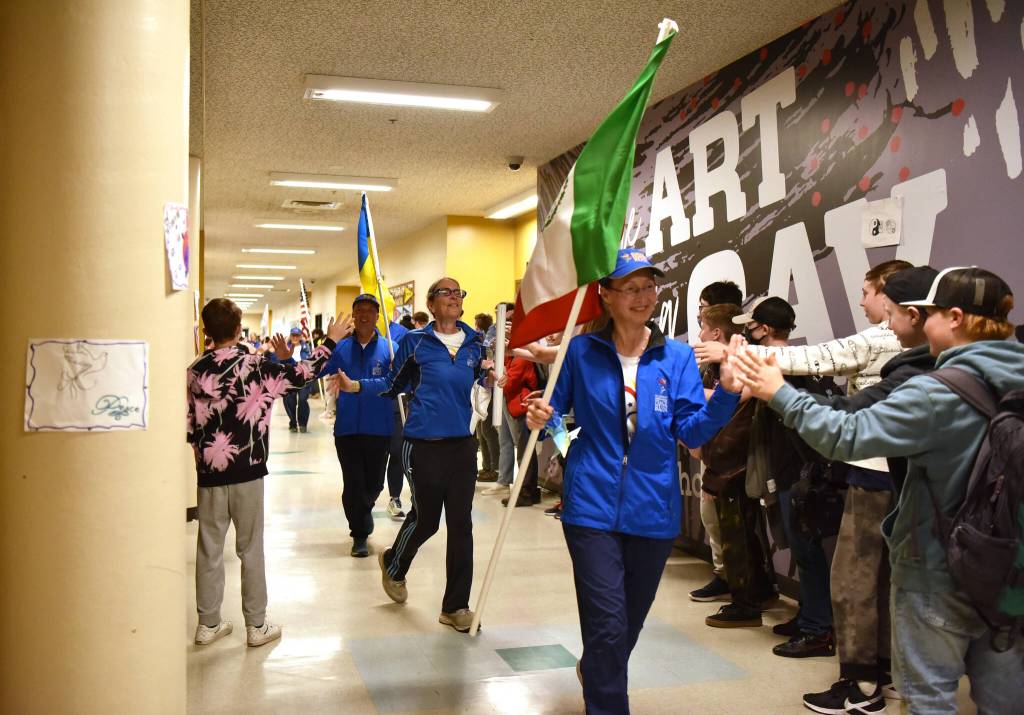 After four years, the Peace Run team visited Kingston Middle School again to share their message with students during a school-wide Zoom call and then ran the Peace Torch through the halls lined with cheering students.