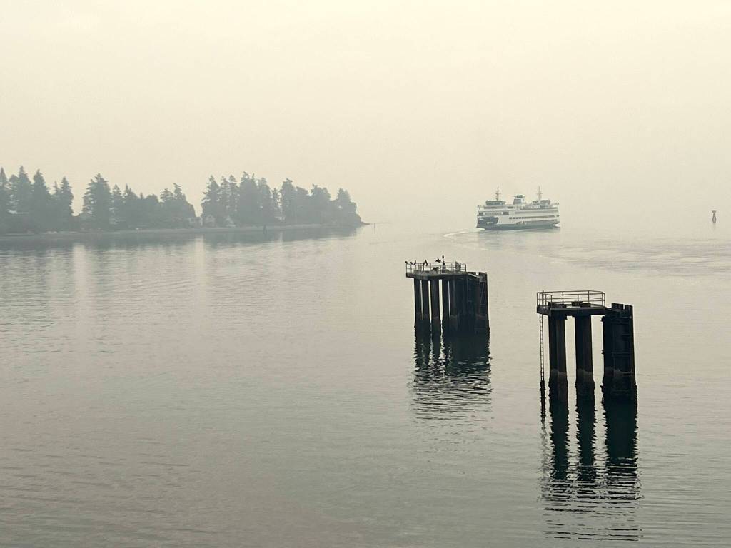 Washington State Ferries continued to shuttle passengers back and forth from Bainbridge Island to Seattle, and their fog horns warning other boats could be heard often in the vast white nothingness.
