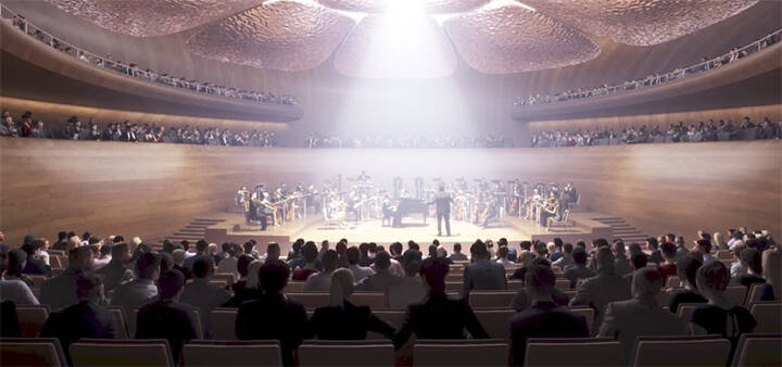 In a seven-minute video about Cavatina, it envisions a 500-seat indoor concert hall and a 600-seat outdoor amphitheater. Salish and Suquamish art inspires the fluid shape of the building. There would be classrooms for music and art.