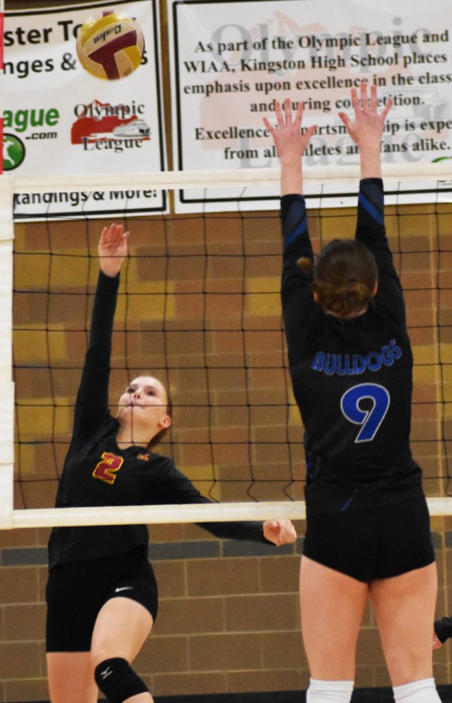 The Bulldogs bounced back after their third timeout. Bulldog Desarae Timmons and Kingston’s Grace Mosco continued to lead their troops through the final points of the second set. North Mason’s Teegan Skionsby ended it at 27-25 with an ace and a kill.