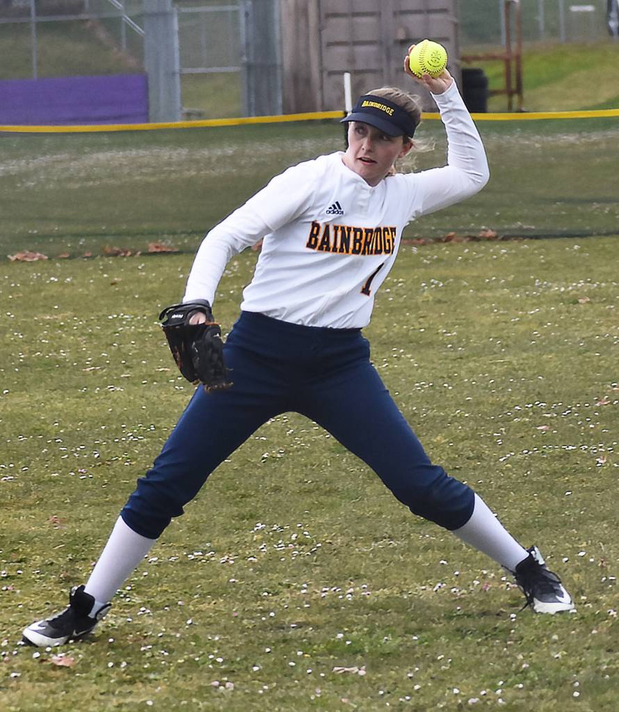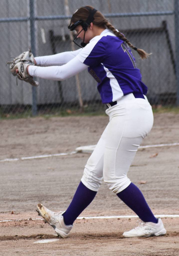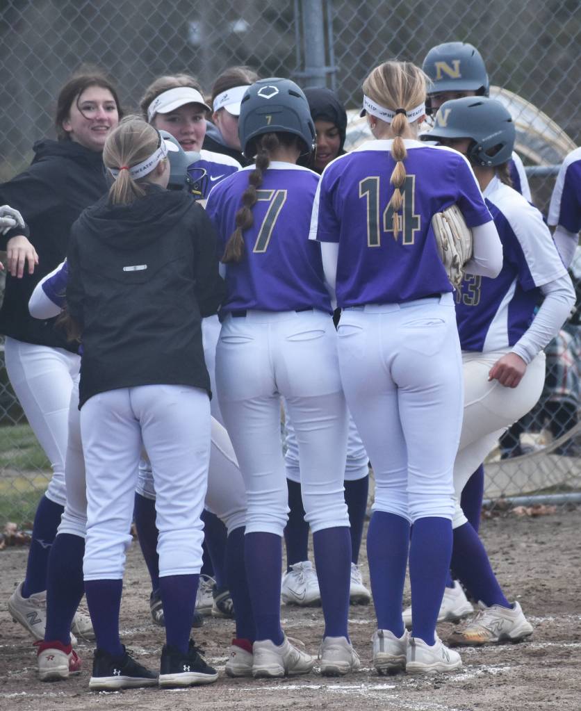The North Kitsap Vikings hosted the Bainbridge Spartans fastpitch team under cold and wet conditions March 23. Since the Vikings dominated early and often, both sides agreed to call the game after three innings, giving North Kitsap an official 22-1 victory.