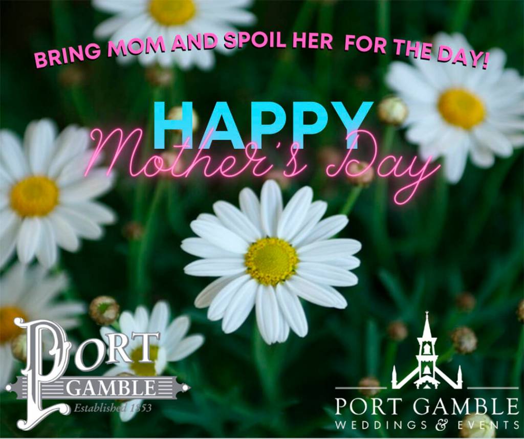 Each year, Mother’s Day weekend is a blast in Port Gamble. With many of the businesses holding sales, bring mom out for the day. Dine in at one of our restaurants or enjoy a picnic with the beautiful views.