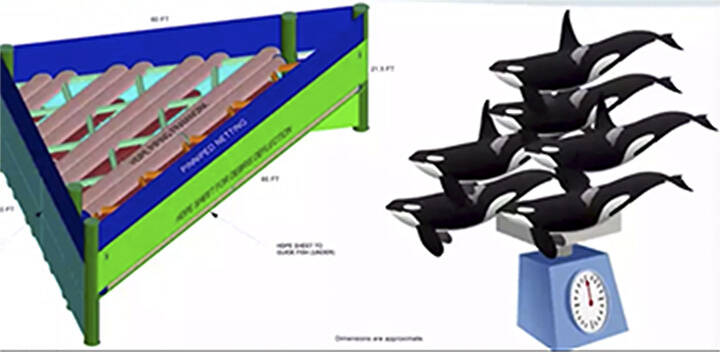 A device that weighs as much as six orca whales is being tested on the Hood Canal Bridge, which blocks juvenile salmon from going out to sea, killing 50% of them.