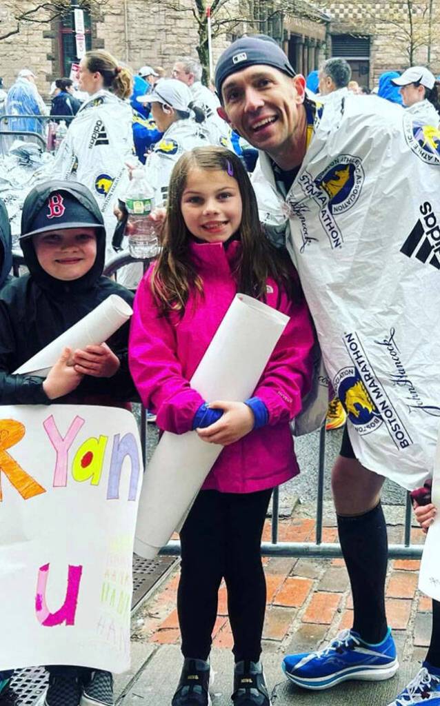 Before the Boston Marathon April 17, Ryan took Melissa and his two children on an East Coast trip — which included a stop at Fenway Park for a Red Sox game — so they could support him during his run. “They helped motivate me,” he said. “My kids made signs. They were troopers, they waited for [over 3 hours] in the rain.”