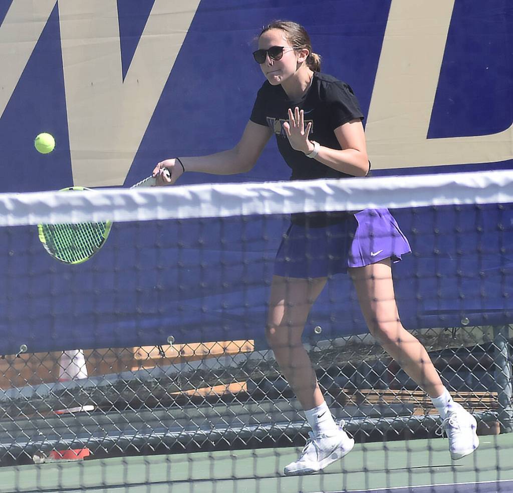 Teegan Devries had an impressive performance in the singles bracket. On the first day, she qualified for the semi-finals after sweeping in two sets in both matches and only dropping a couple of games total. Devries started the second day against District 3 champion Taraneh Khalighi and lost to her for the second time this season in two sets. She fell to Sequim’s Kendall Hastings and finished sixth in the state.