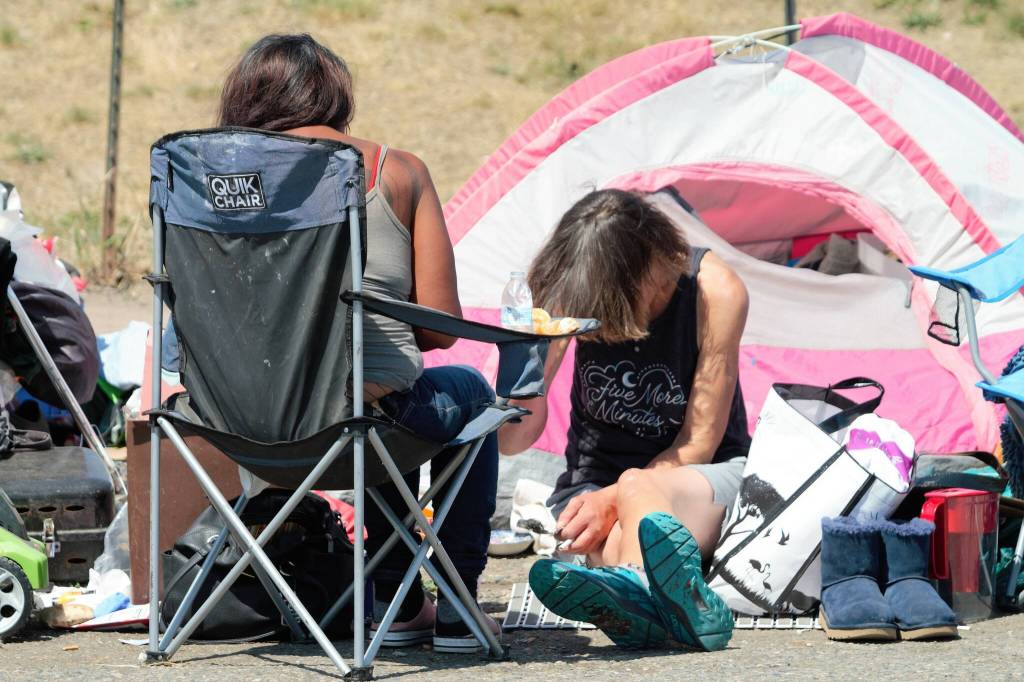 The encampment’s population is made up of the chronically homeless and those who have recently fallen on hard times. Jackie Baird, 63, finds herself in the latter category, having been evicted with her son a month ago after he came up short on his part of the rent. A day in her life now comes down to “getting up in the morning, people are out and smoking and talking, and you just get involved. It feels like home, but it doesn’t.”