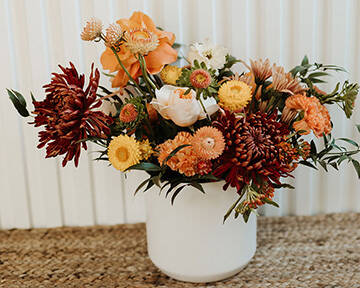 Blooms available at The Flower Box include roses, ranunculus, stocks, chrysanthemums, carnations, anemones and more. Some are grown in Washington while others come from California and South America. “Our main offerings are bouquets in a few different sizes,” Rychener said. “We also have arrangements, something you might put on a coffee or dinner table.”