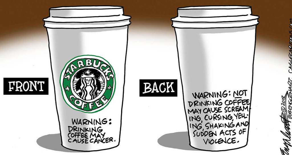 Don’t let my babbling threaten your heartfelt beliefs but consider the Big Picture. All the memes, t-shirts, posters and Garfield cartoons about coffee mania are amusing, but what if they’re giving aid and comfort to our adversaries?