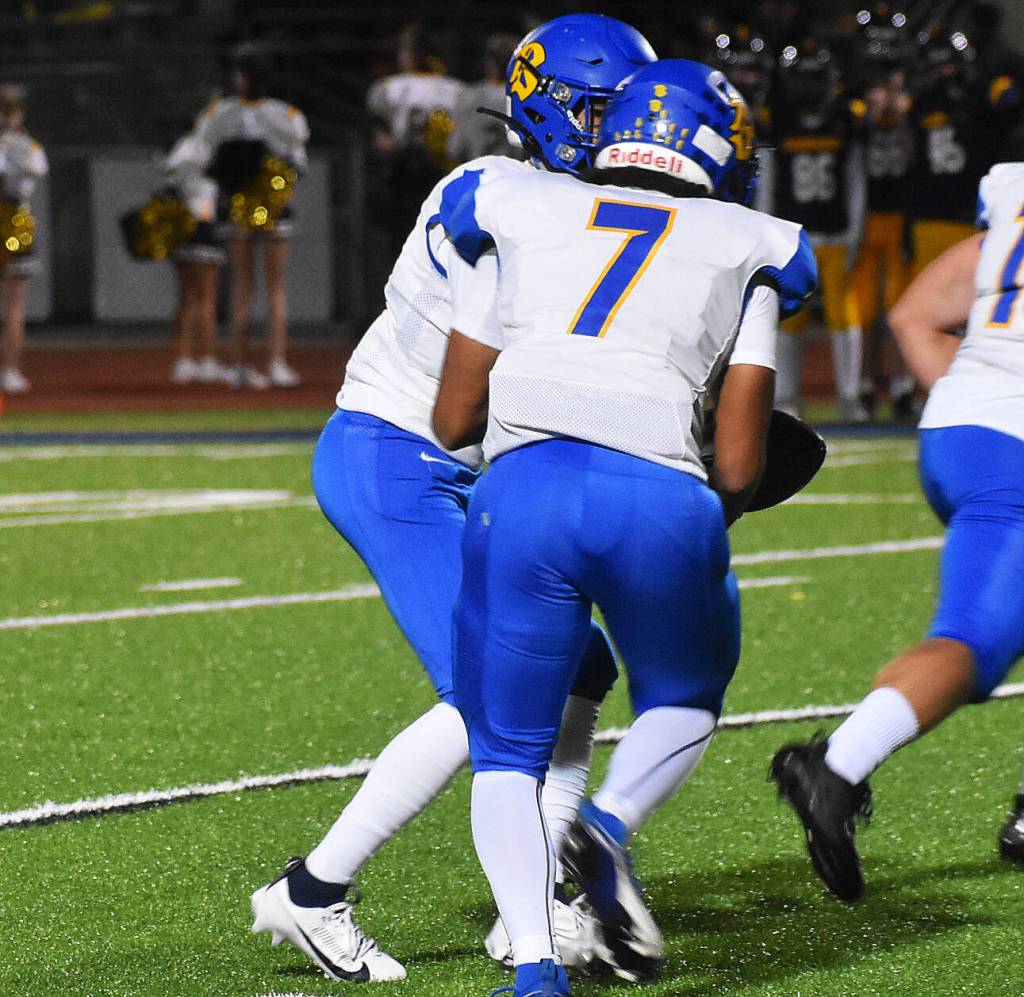 In Friday’s game at Bremerton, Jalin Littleraven-Oliver gave the Knights the first opportunity to score when he blocked a Bainbridge punt and recovered it on the Spartan 32-yard line. But the Knights turned the ball over on downs.