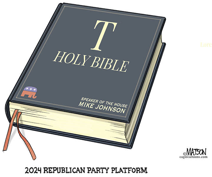 To the shock of nobody, Speaker of the House Republican Mike Johnson has already proved to be a contemptible little man, pitching a crackpot deal to fund aid for Israel by swiping the money from the bolstered IRS program that cracks down on rich tax cheaters. Surely Johnson must know that by letting the rich off the hook, it shifts the tax burden to the middle class. Maybe he consulted his Bible and found a comforting passage – something like, “Be not honest about what thee knows, lest it enlighten even those in thrall to thou.”