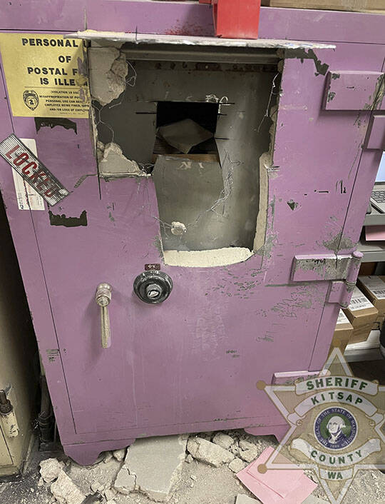 A damaged safe from the Olalla Post Office break-in.